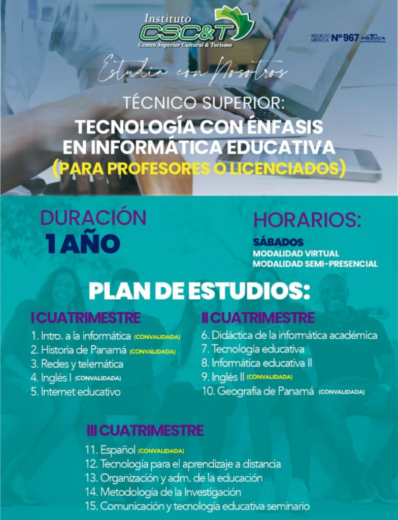 La Fundación Institutos Panamá se enorgullece de ofrecer un programa de Técnico Superior en Tecnología con énfasis en Informática Educativa que brinda a los estudiantes una base sólida en tecnología y habilidades informáticas. ¿Por qué deberías considerar estudiar con nosotros? Aquí te presentamos tres ventajas irresistibles: